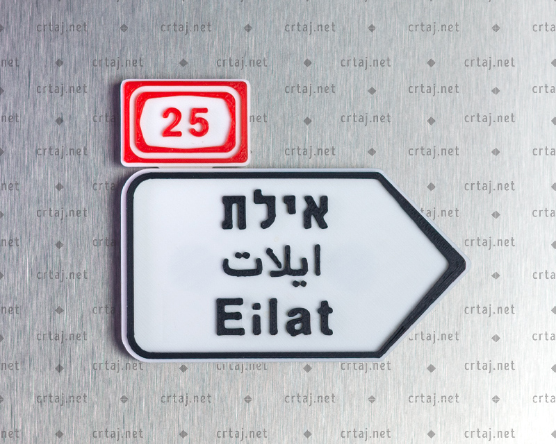 Fridge magnet “To Eilat, road 25”, аn exact copy of the Israeli sign.